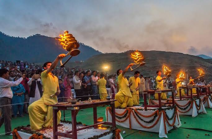 - Evening aarti at the Ganga ghat where priests offer fire as an offering to seek blessings.